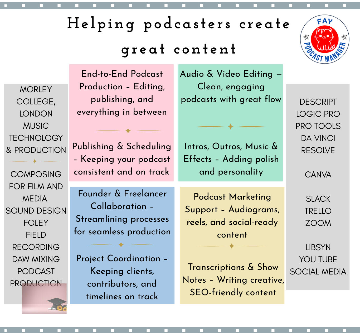🎙 200+ podcast episodes delivered 🎬 Audio & video editing, intros/outros, graphics 📱 Making podcasts into social media clips 📝 Writing show notes ❤️ Passionate about creating content that connects